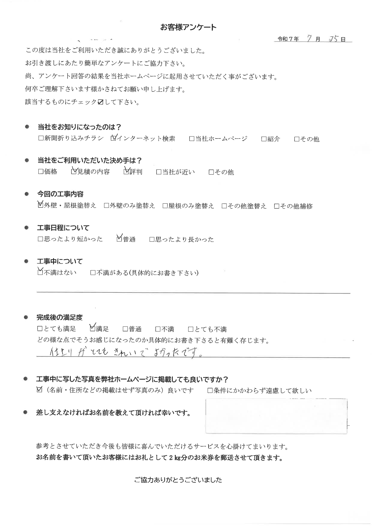 先日無事工事が完了しまして、工事完了後にお客様から頂いたアンケートをご覧下さい。
